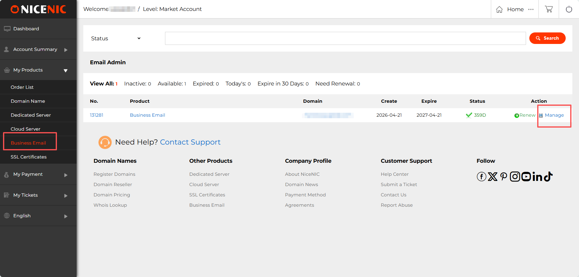 How to Access Your Business Email You can access your Business Email login details by following these steps: 1. Log in to your NiceNIC account Navigate to: My Products > Business Email > Manage