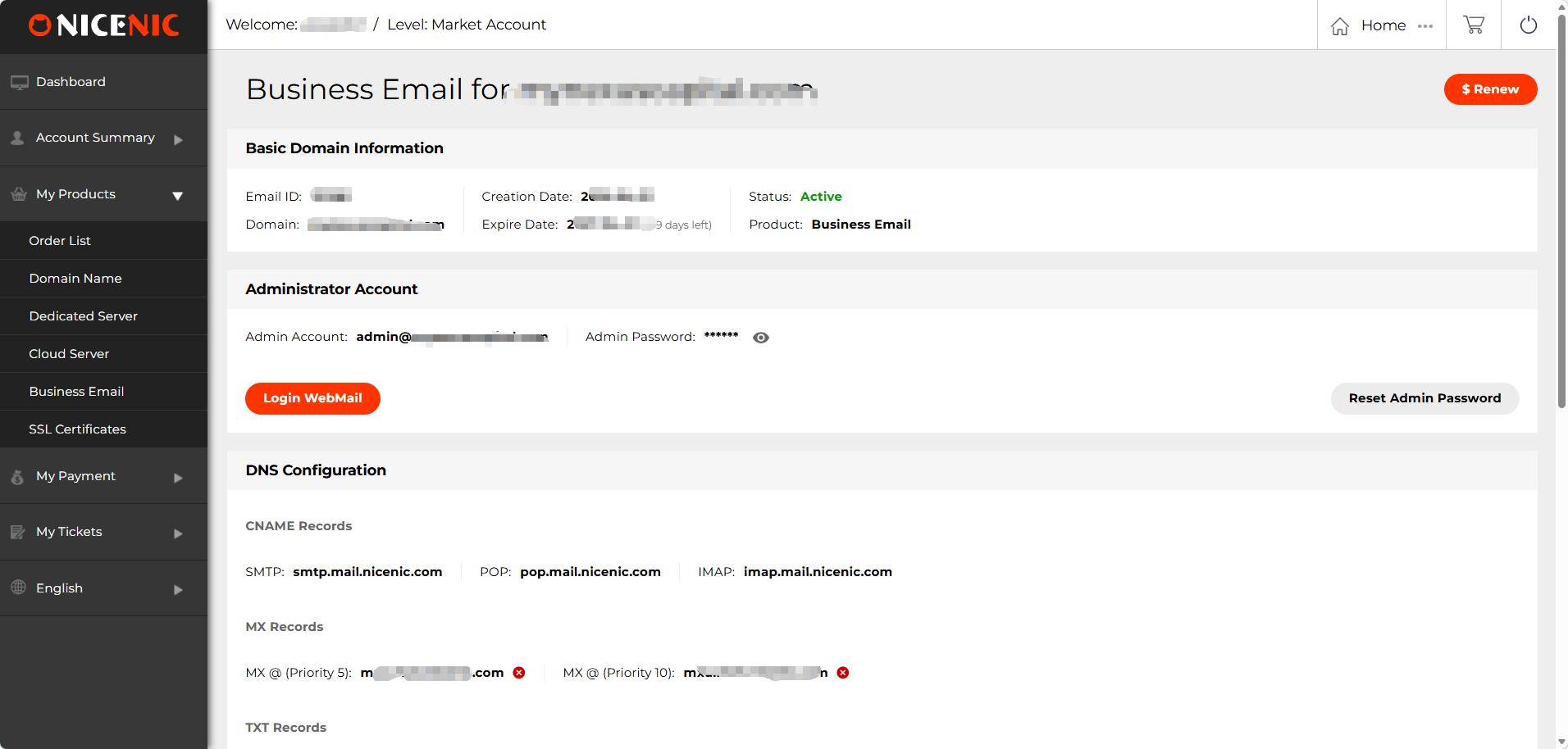 Login details are available directly in your NiceNIC account